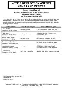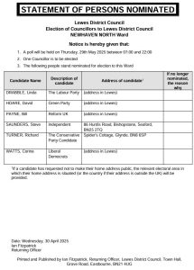 Lewes District Council – Election of Councillors to Lewes District Council