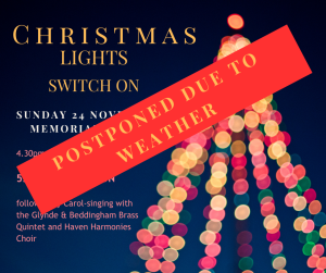 The Christmas Lights Switch On has been postponed, due to the weather conditions. New date to be announced.